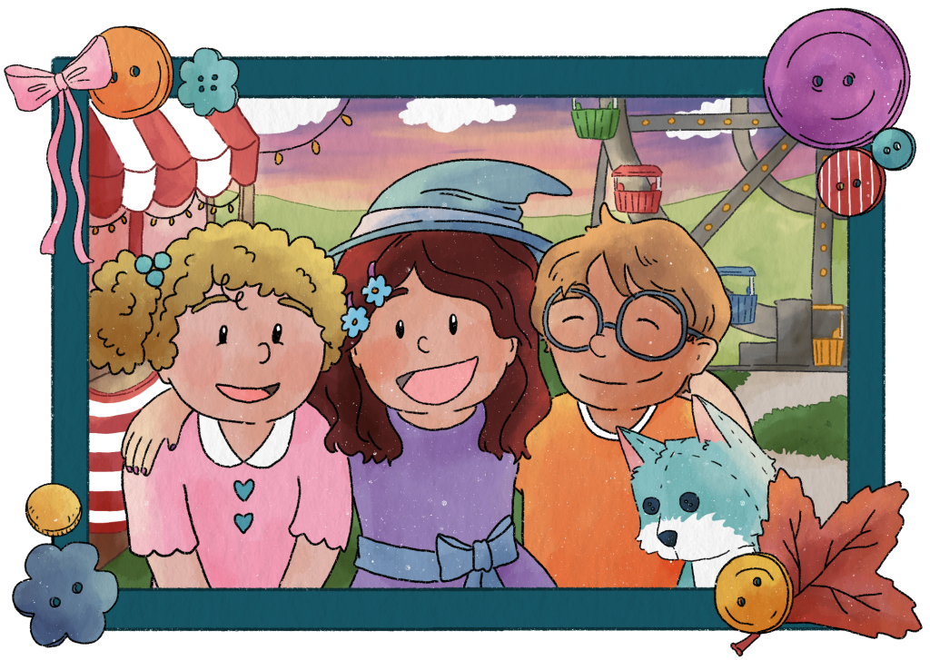 Recently, Leelu, her best friend Ollie, and their new friend Gillie went to a town fair about 10 miles from where they live. Leelu’s parents took the three of them, and they had so much fun! Here, they are posing for the camera with the fairground behind them.